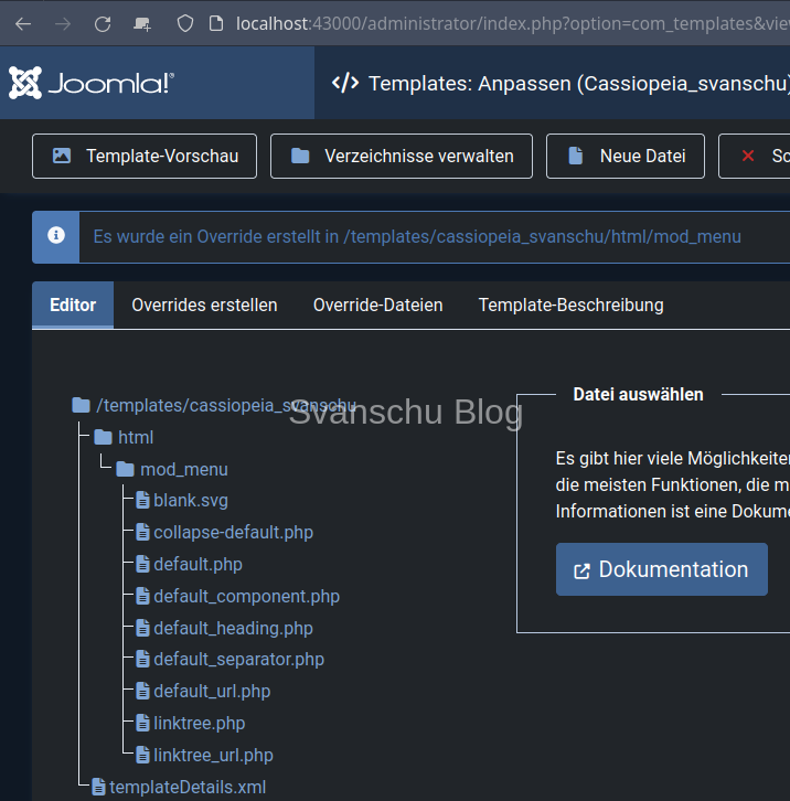Wie Overrides im Detail erstellt werden, könnt ihr in der Joomla! Dokumentation und auf joomla.org nachlesen.